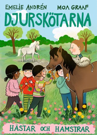 Tänk att få ta hand om riktiga djur på en bondgård! Det får Minna, Valle, Amira och Signe göra för de ska bli djurskötare. Valle kan redan en del om djur. Han har en egen hamster som heter Messi. Idag ska barnen få träffa ponny-hästarna för första gången. Det ska bli roligt, tycker Minna. Fast lite pirrigt också, hästar är ju ändå ganska stora. Tur att de har Sanna, Minnas stora kusin. Hon jobbar på bondgården. Och hon vet allt om hur man sköter om både stora och små djur.EMELIE ANDRÉN är förlagsrepresentant och författare. På Alfabeta har hon skrivit småbarnsböckerna om Nisse & Nora med Lisa Moroni och trilogin om barnen i Lådbilslandet med Jeanette Milde. MOA GRAAF illustrerar både egna och andras böcker. Serien om Djurskötarna är hennes första böcker på Alfabeta.